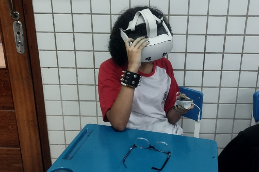 A sensação de colocar os óculos de realidade virtual foi como atravessar uma fronteira invisível. De repente, a matemática deixava de ser apenas números e fórmulas e ganhava vida na ponta dos dedos, saltando em formas, espaços, ângulos e desafios que pediam não só raciocínio, mas também coragem e criatividade. Cada aluno parecia mergulhar em seu próprio mundo, e ao mesmo tempo todos faziam parte de um grande cenário coletivo onde aprender virou uma aventura compartilhada.